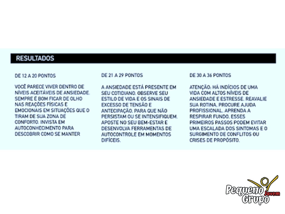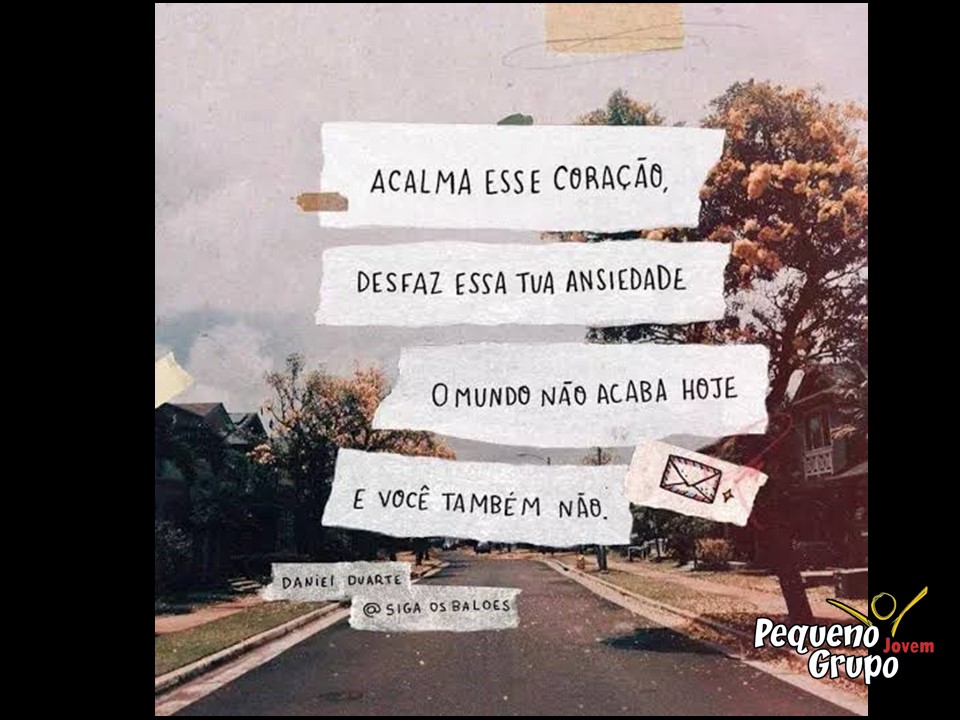 Explicação do tema: Ansiedade é uma palavra que, infelizmente, tem se tornado cada vez mais comum no vocabulário dos jovens. É aquele sentimento que aperta o peito, acelera o coração e traz uma avalanche de pensamentos sobre o futuro, tirando o foco do presente. Neste encontro de Pequeno Grupo, vamos nos aprofundar nesse tema, discutindo como a ansiedade pode ser enfrentada e, mais importante, vencida. A Bíblia nos oferece uma perspectiva única sobre como lidar com as preocupações e os medos que a vida moderna traz.